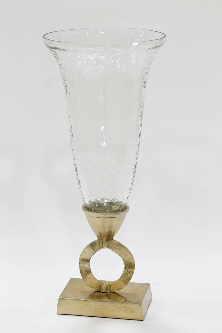 Description: This vase is a stunning and unique design! Elevated by an open circle and featuring a slight ribbon texture, this piece is very modern and stylish!