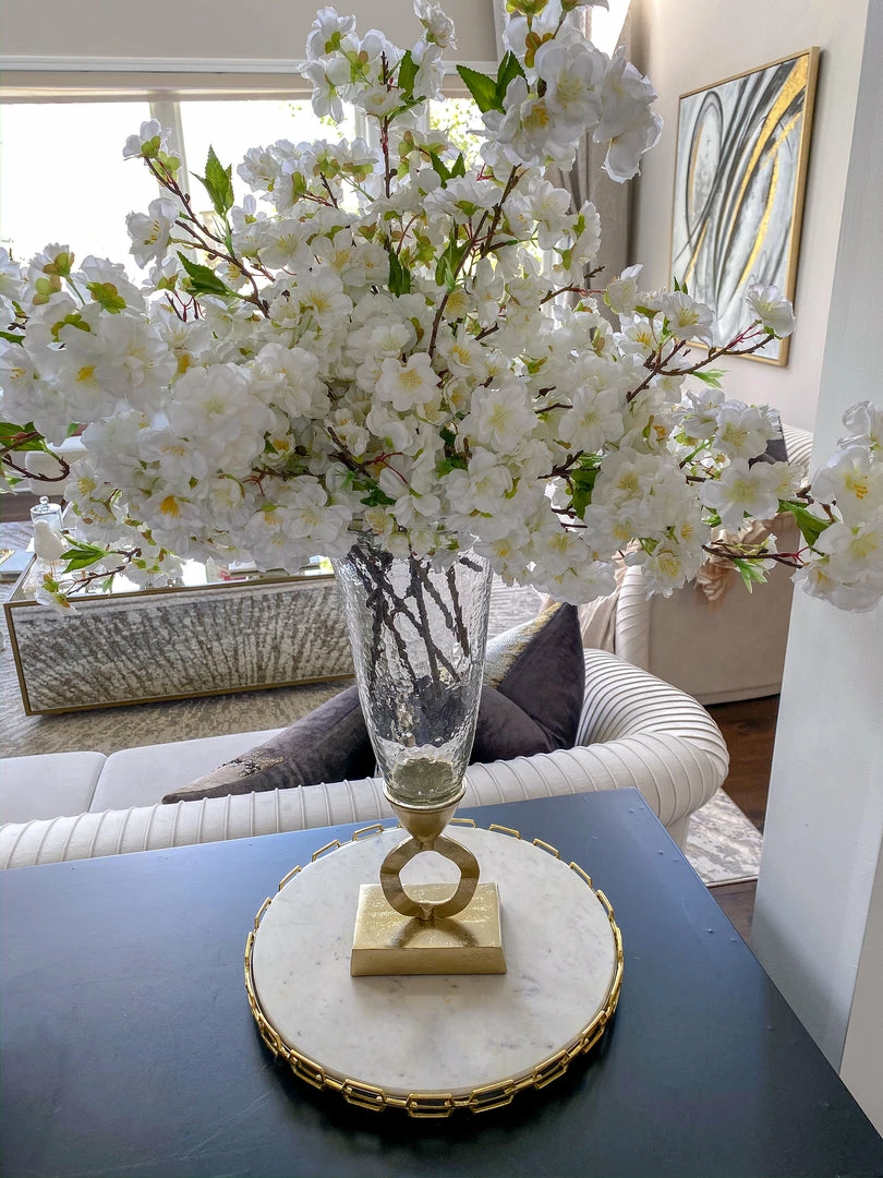 Inspire Me! Home Decor Large Rectangular Marble Tray With Cherry Blossom Details