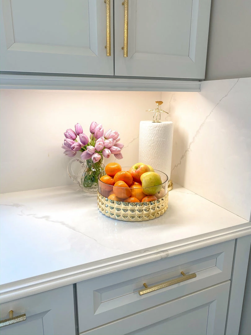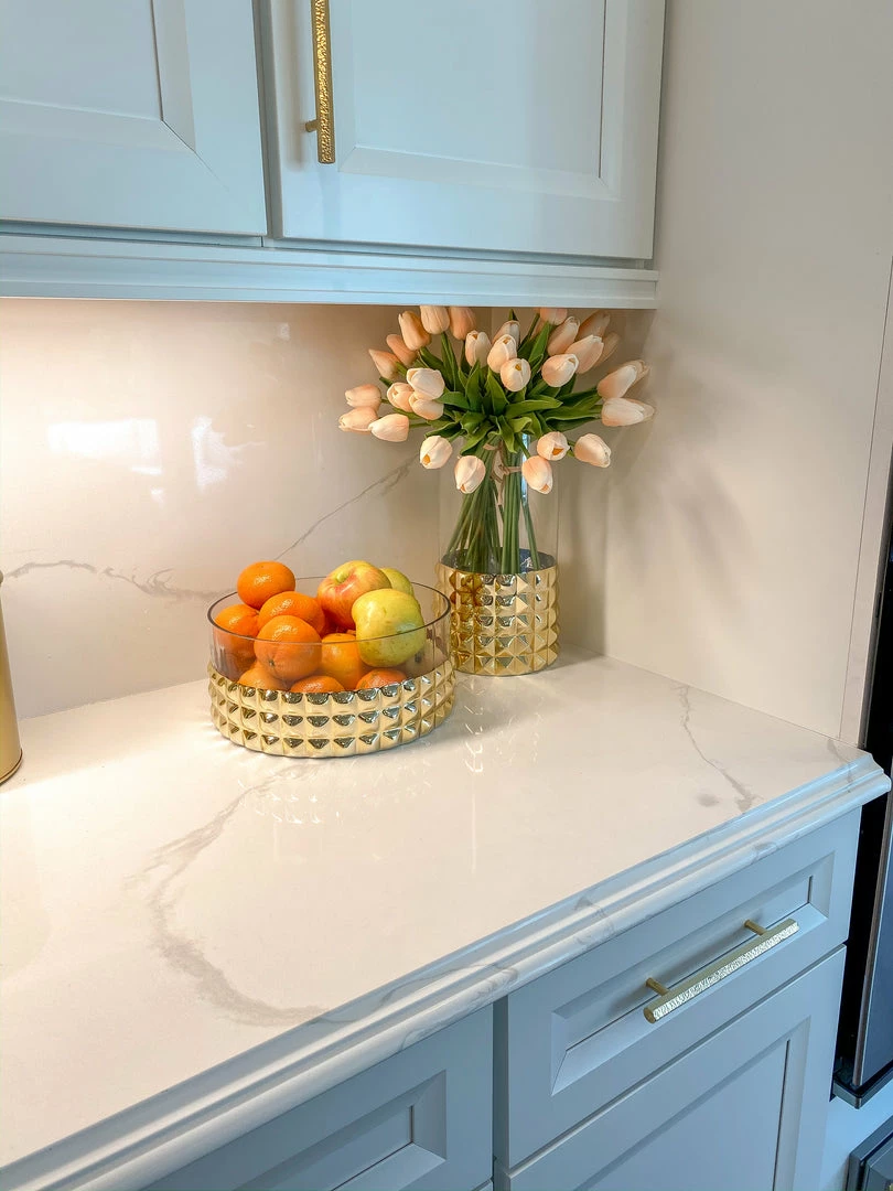 Inspire Me! Home Decor Round Marble Tray With Gold Edge And Metal Details