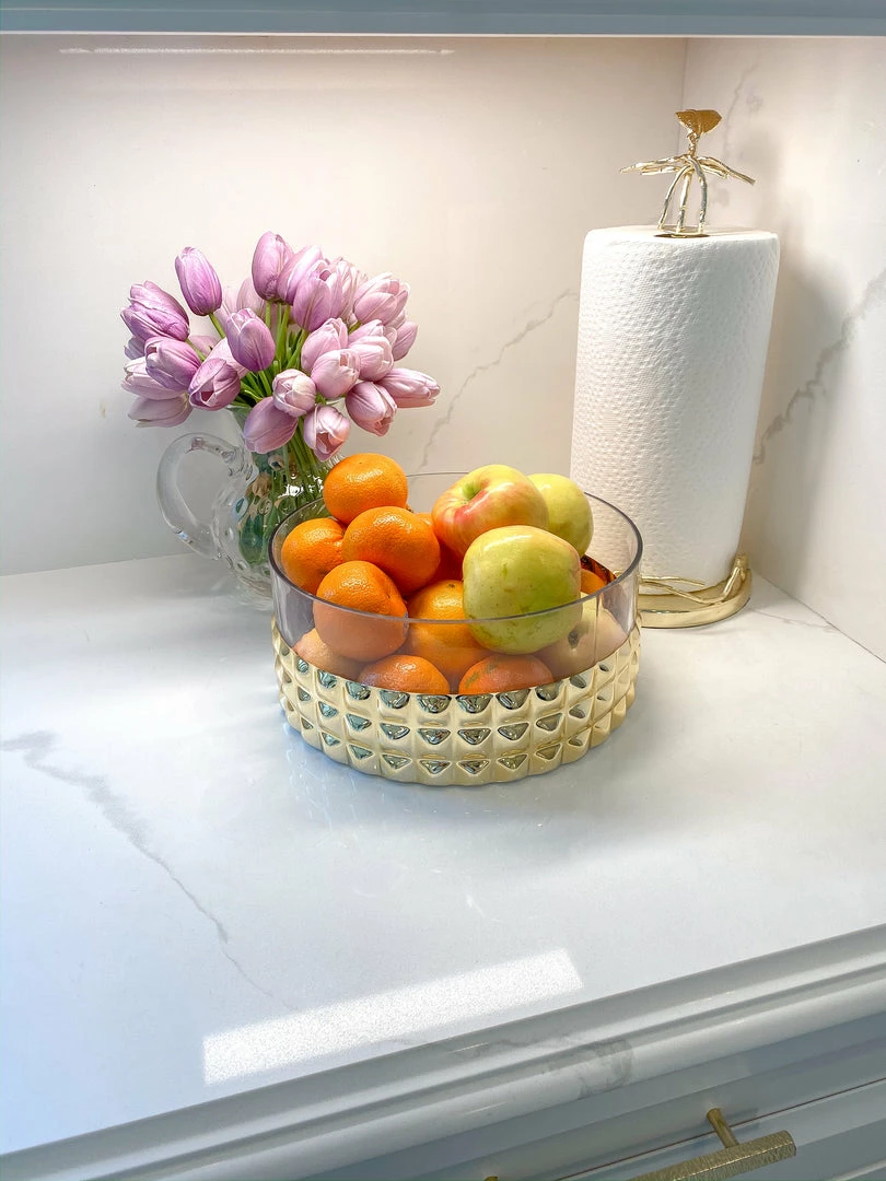 Description: This beautiful studded glass bowl is perfect for your home decor! Display on its own or with your favorite florals to make the perfect statement peice!