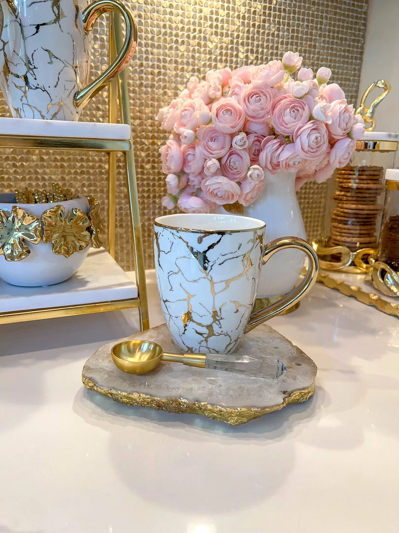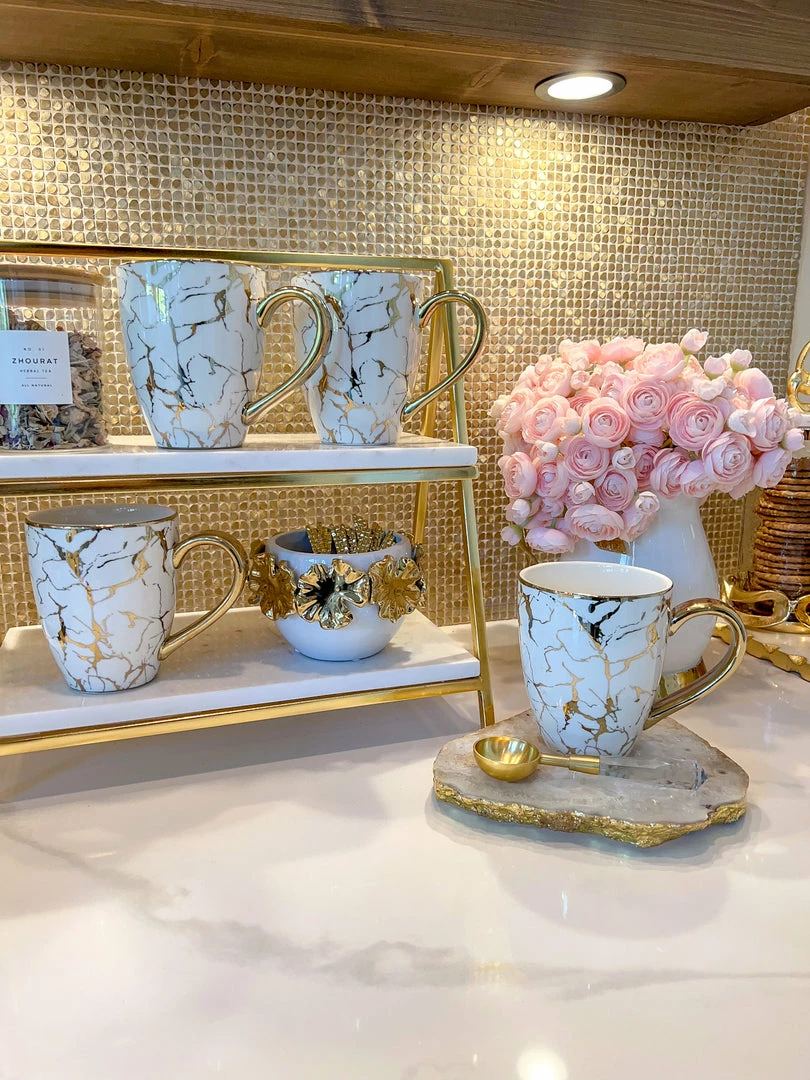 Description: This is a large gold and white swirl design mug and will look stunning on your coffee station!