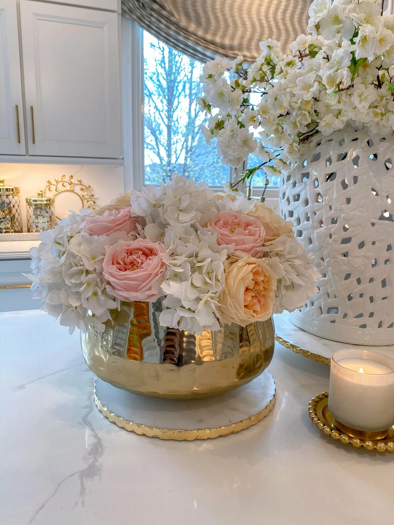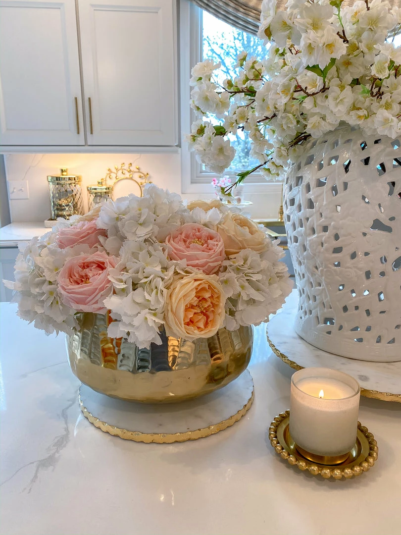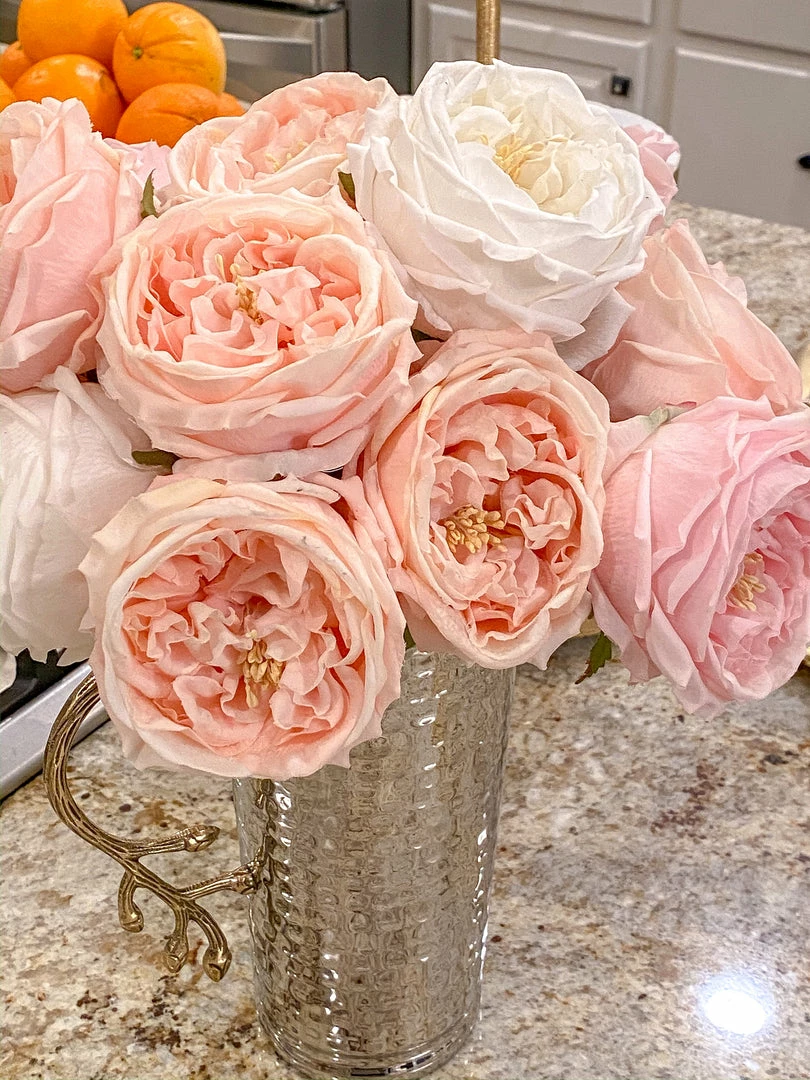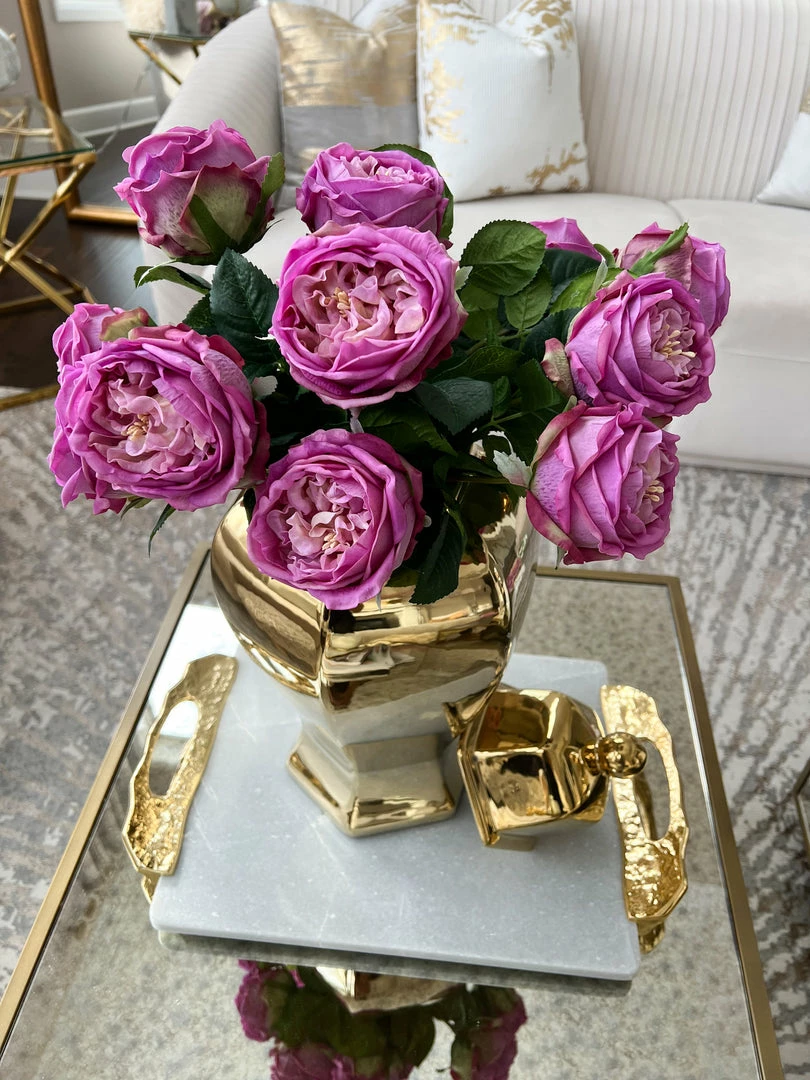 These Real-Touch Austin Roses are your first sign of spring! The bright colors will bring warmth to your home and pair beautifully with your favorite IMHD vase. These elegant faux florals come in White, Pink, Purple, and Yellow.