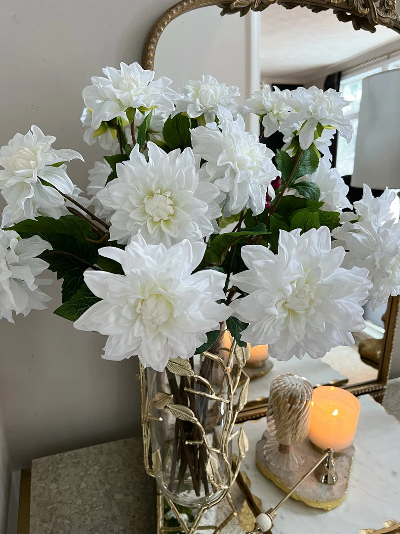 Description: These Dahlia stems feel so real! They are so beautiful in each color and will bring vibrance and life to your space!