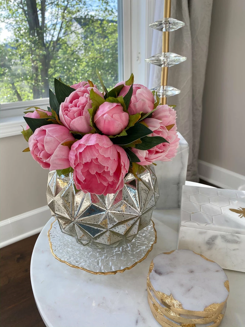 Description: These peonies scream spring! We love the pretty tones that are perfect to style in your favorite vase and the soft look that these bring.