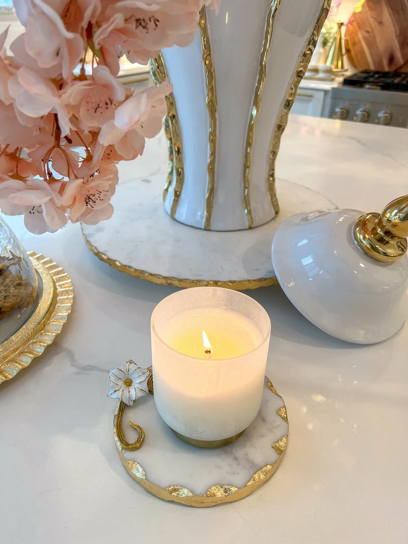 Description: This marble trivet is perfect to place a candle on or use it as a coaster. It is perfect to use on your coffee station or add it to any vignette in your home!