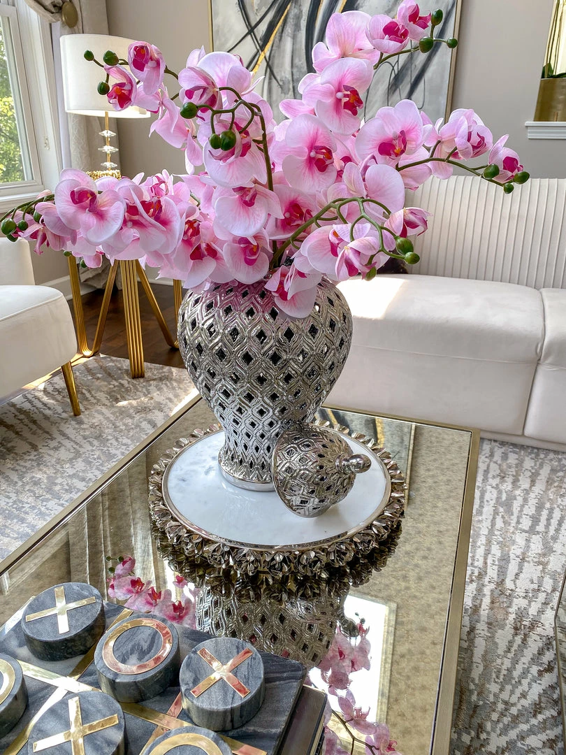 Description: This round metal tray is a unique base for your tabletop decor! This tray features a white marble base and floral details on the edge to add a perfect pop of texture!