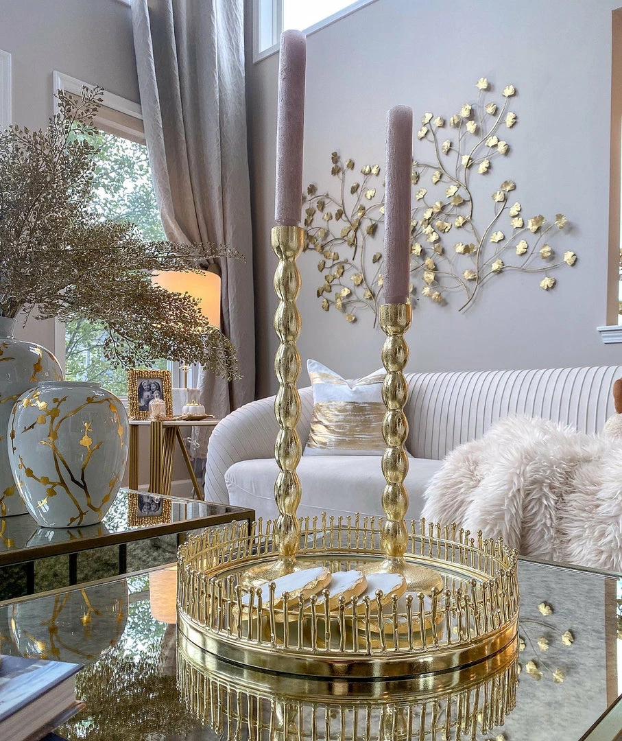 Description: This stunning round mirror tray offers a unique elegant fence detail. The straight design of the metal border featured stunning textures and details! Available in two sizes, and in gold or silver!