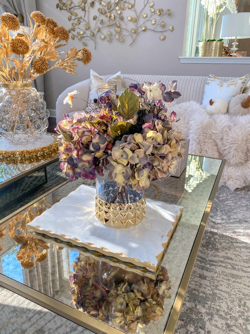 Inspire Me! Home Decor Large Rectangular Marble Tray With Cherry Blossom Details