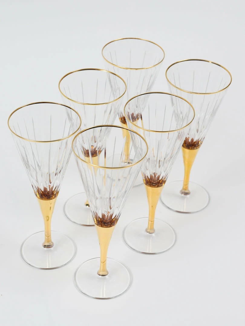 Description: These gold and glass glasses are stunning for any dinner party or to display on your barcart!