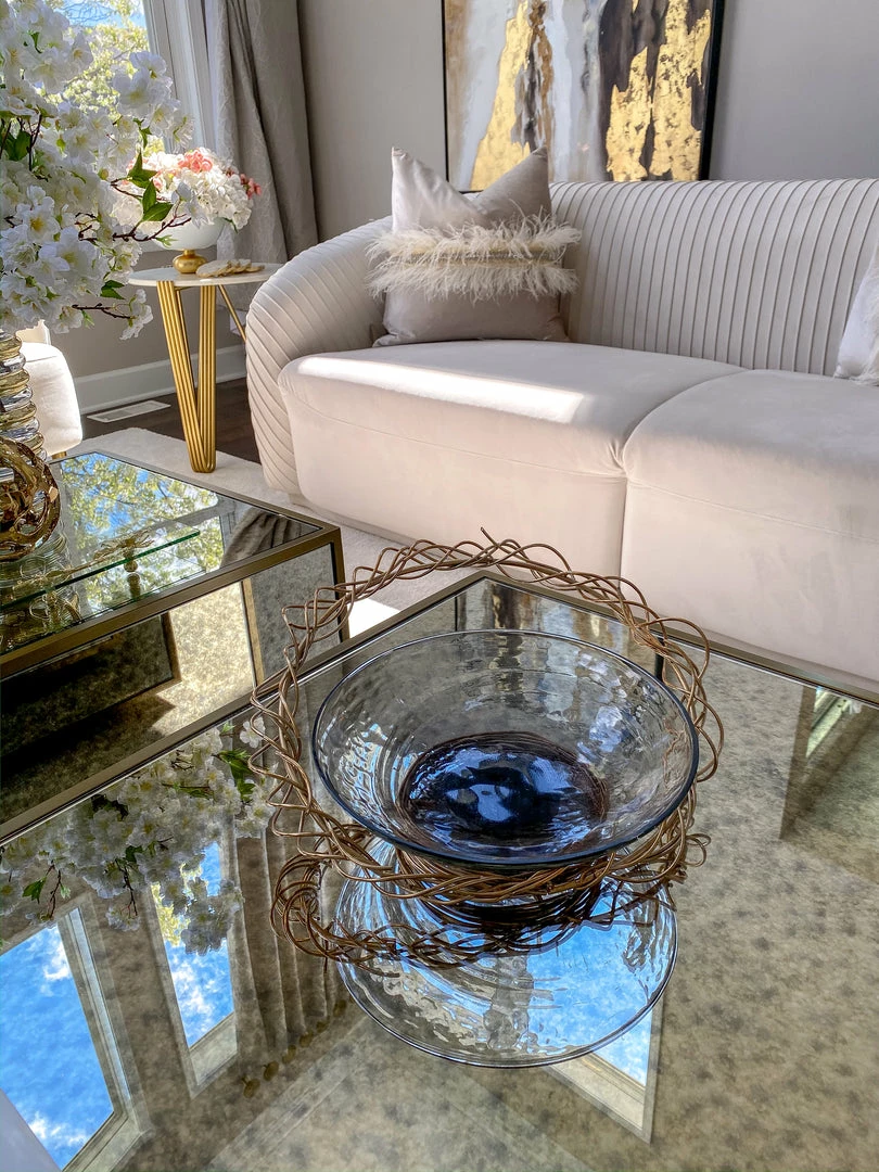 Dimensions: Glass Bowl- 10″D, 13″L x 14″W x 6″H