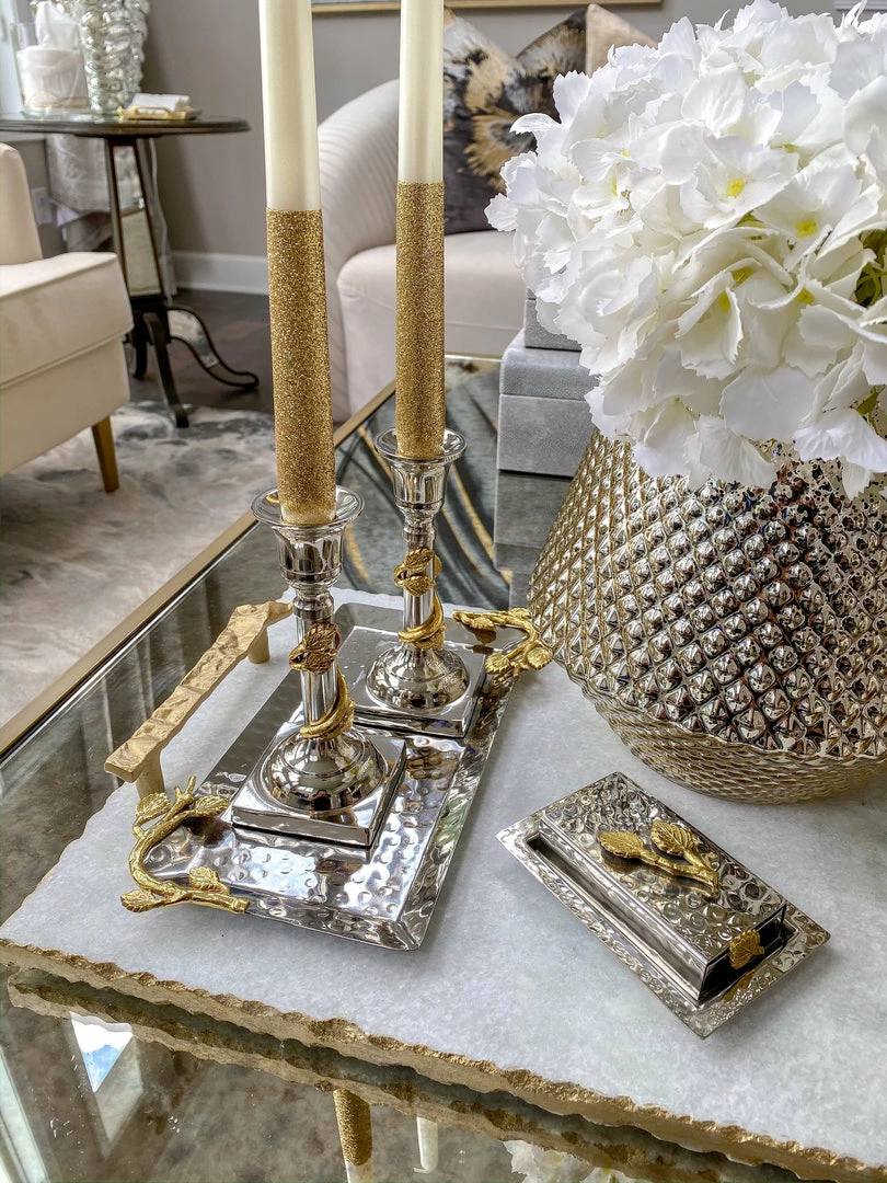 Inspire Me! Home Decor Rectangular Glass Tray With Cherry Blossom Details