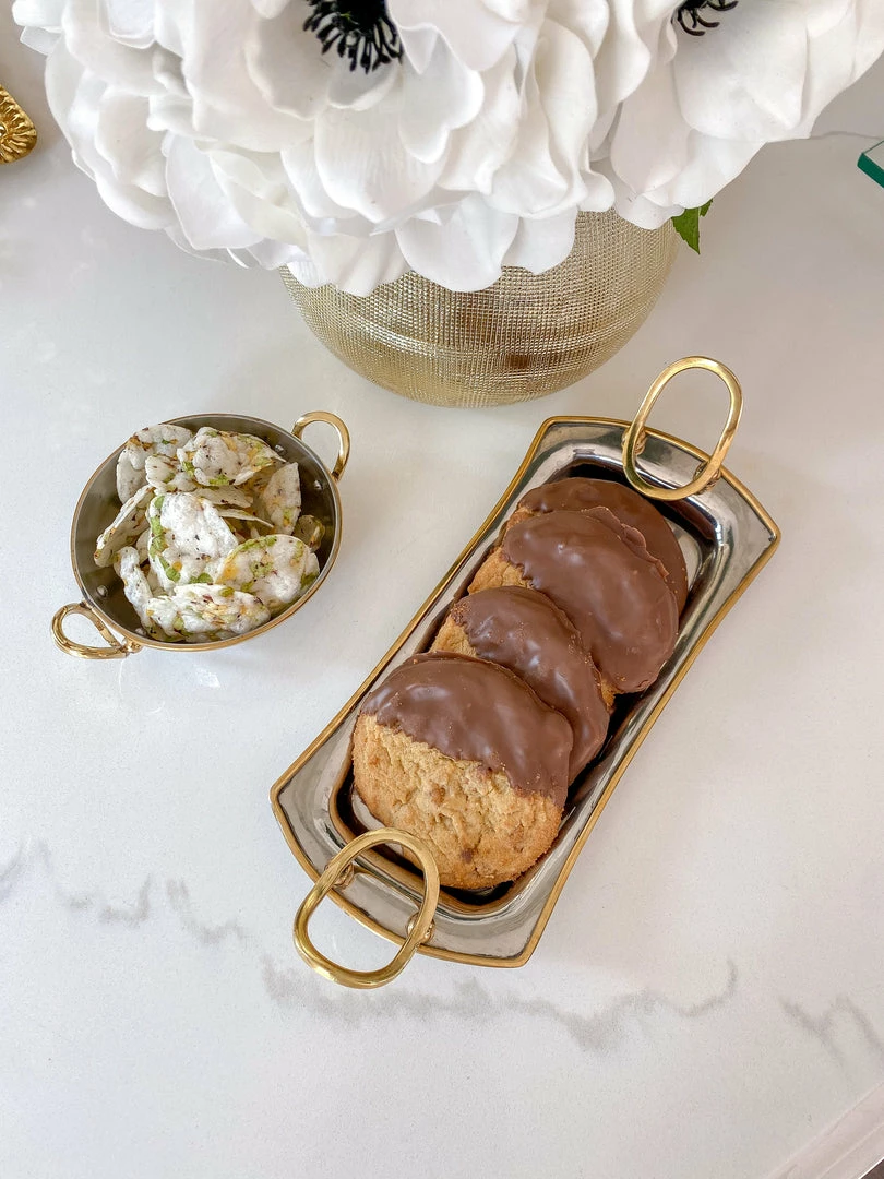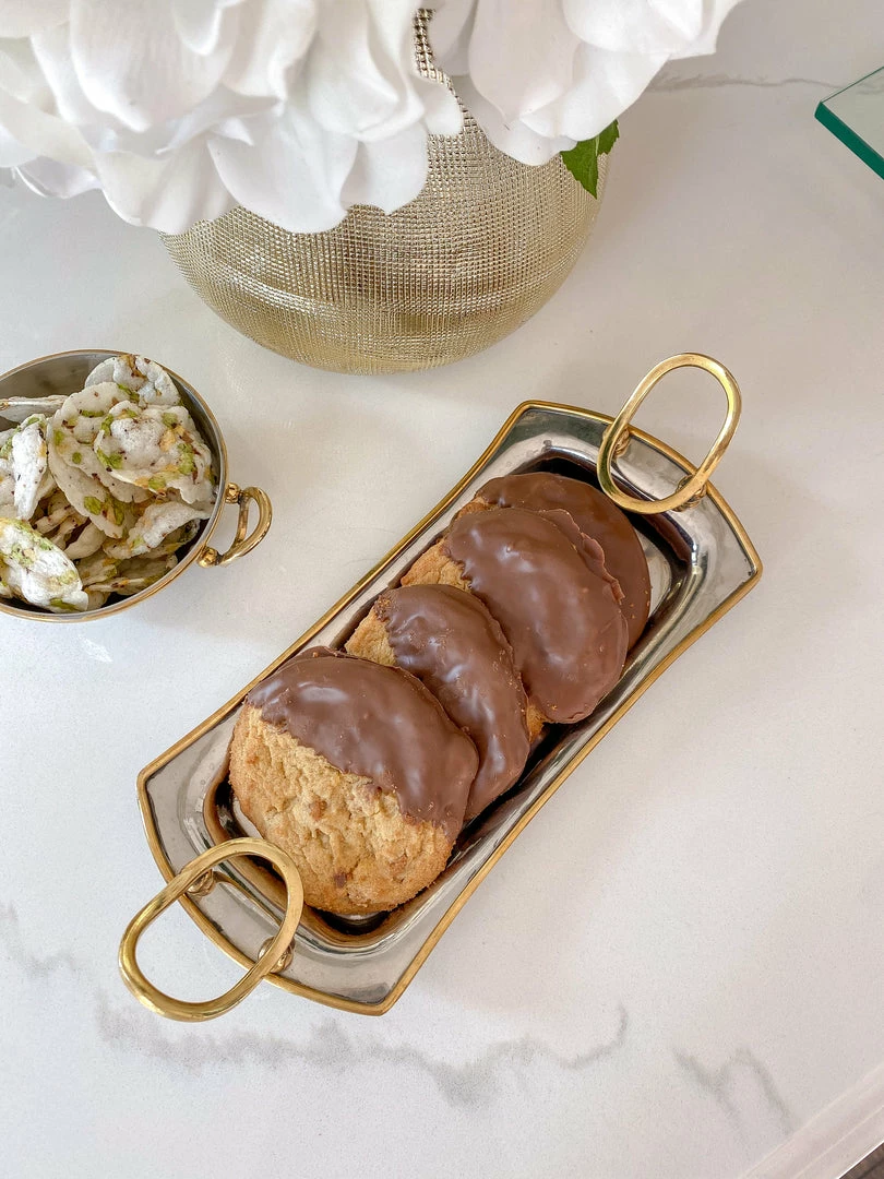 Description: This metal tray is simple and beautiful and perfect for any home decor!