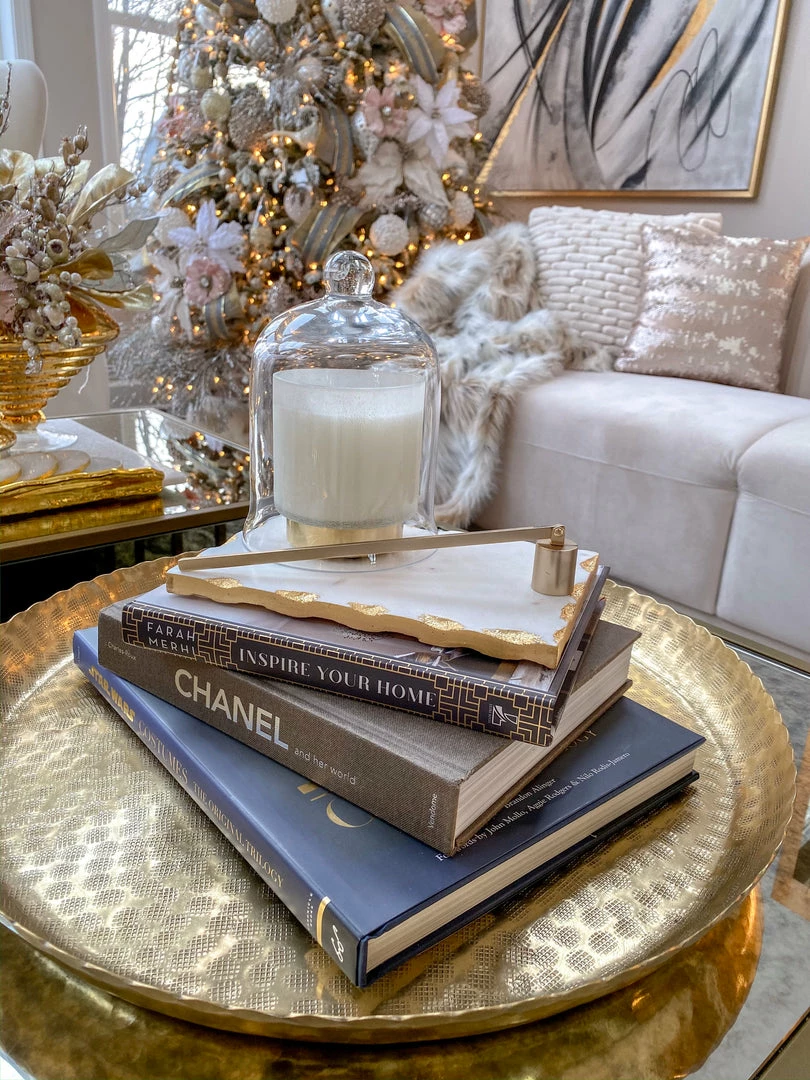 Inspire Me! Home Decor Large Rectangular Marble Tray With Cherry Blossom Details