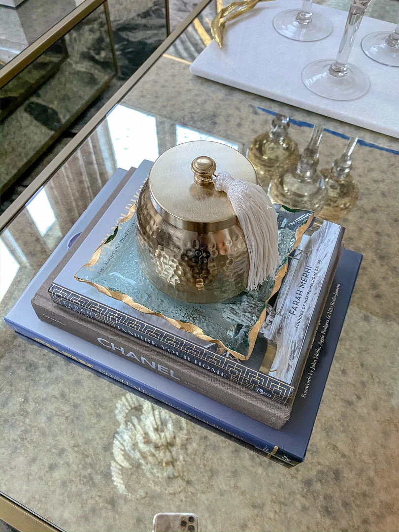 This beautiful square crystal tray is perfect for your coffee table or your island and has many different uses!