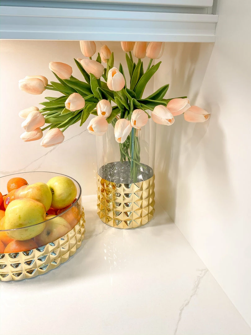 Description: This beautiful studded glass vase is perfect for your home decor! Display on its own or with your favorite florals to make the perfect statement peice!