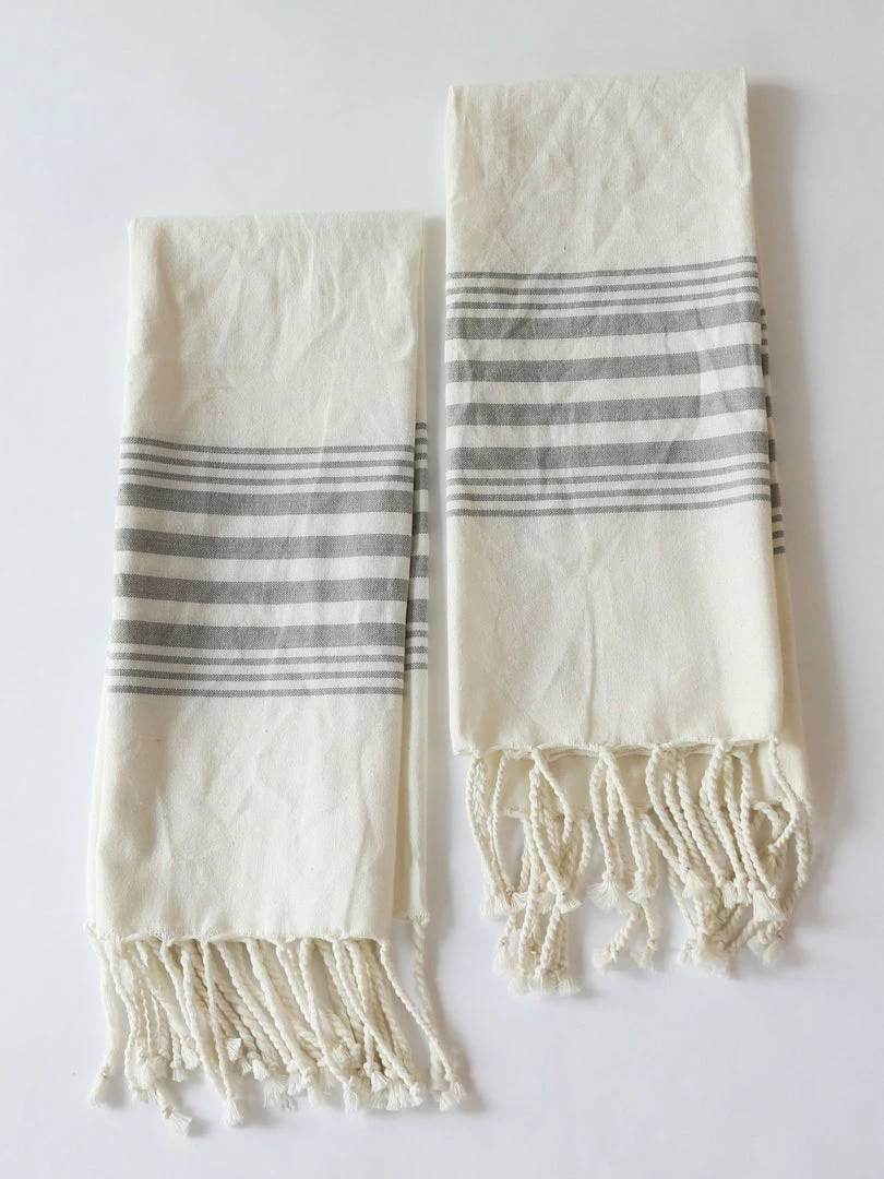Description: These soft dish towels are perfect for your kitchen! Available in two different neutral colors, they will blend with any existing home decor and add a cozy vibe to your home!