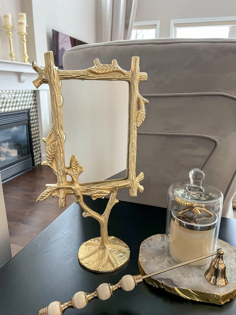 Description: This gold branch framed mirror is so unique! Perfect for a side table or credenza.