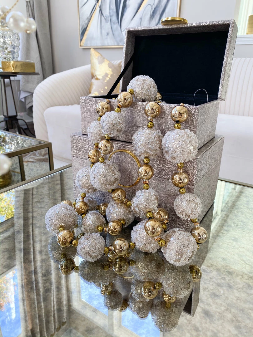 This garland is a georgous gold and white color and sits beautifully in a decorative bowl or on your tree!