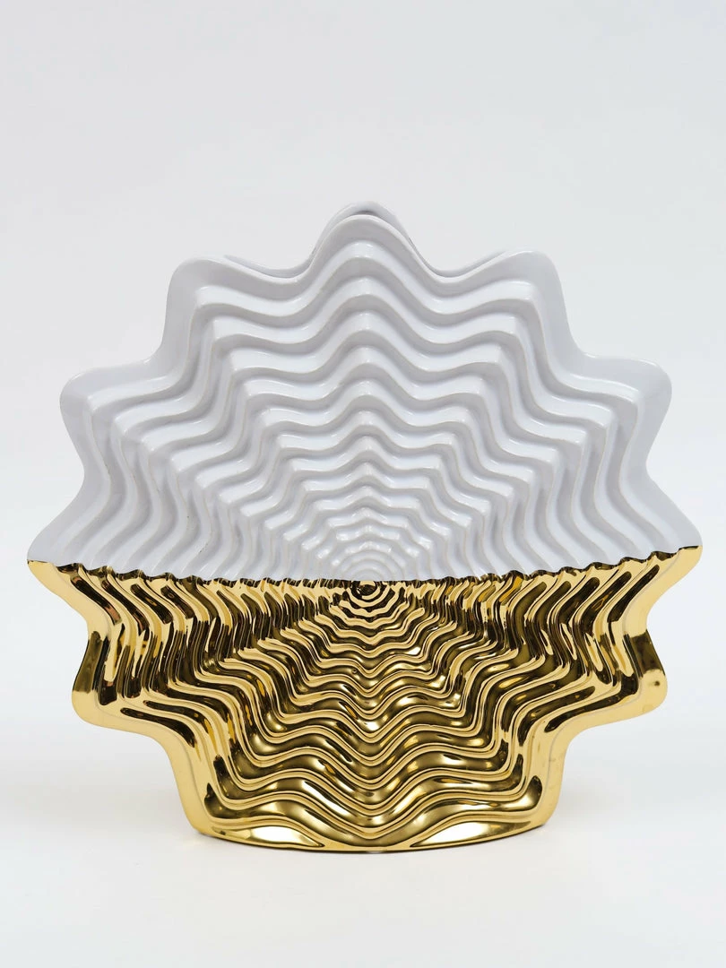 Inspire Me! Home Decor White Ceramic Vase With Stunning Gold Floral Detailed Center