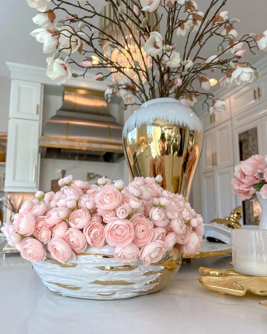 Inspire Me! Home Decor White Ceramic Vase With Stunning Gold Floral Detailed Center
