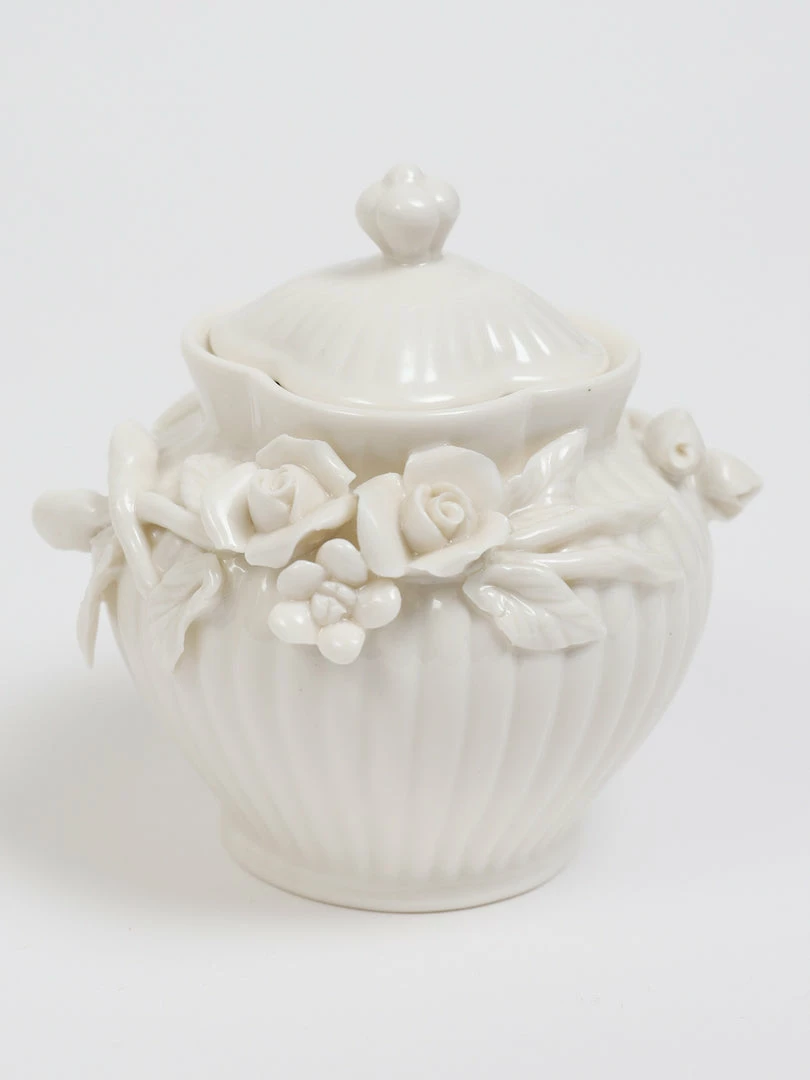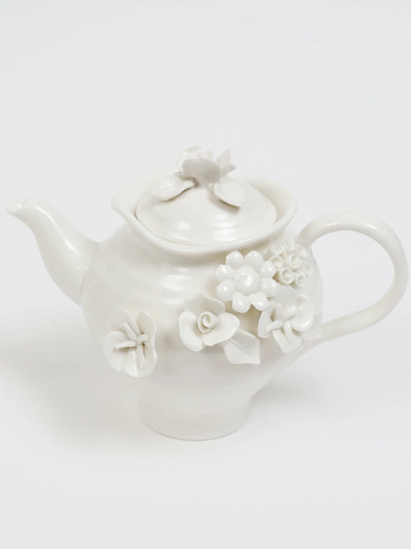 Description: This is a beautiful white tea set with floral designs and will make your tea time perfect every time!