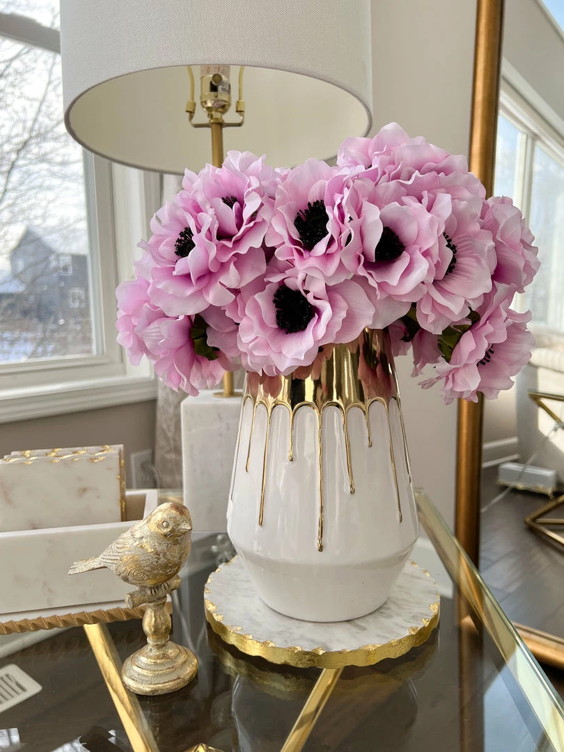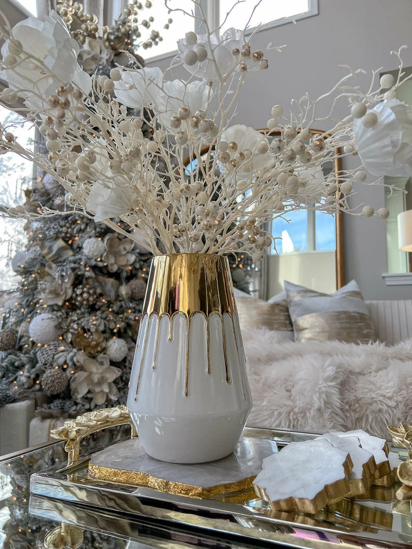 Description: This white porcelain vase has a dripped border and in one word, is simply GORGEOUS!